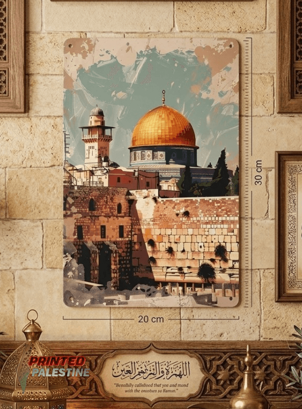 Breng de kracht en schoonheid van Palestina in huis met dit stijlvolle metalen wandbord van Al-Quds. Dit lichte, maar duurzame wandbord is gemaakt van roestvrij materiaal en biedt een prachtig artistiek aanzicht dat niet alleen opvalt, maar ook een belangrijke boodschap uitdraagt.