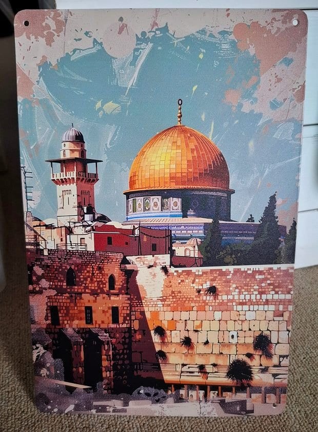 Dit metalen wandbord van Al-Quds is een prachtig artistiek aanzicht. Licht van gewicht en van een roestvrij materiaal. Een origineel cadeau of inspirerende wanddecoratie om Palestina niet alleen in het hart maar ook in het zicht te houden.
