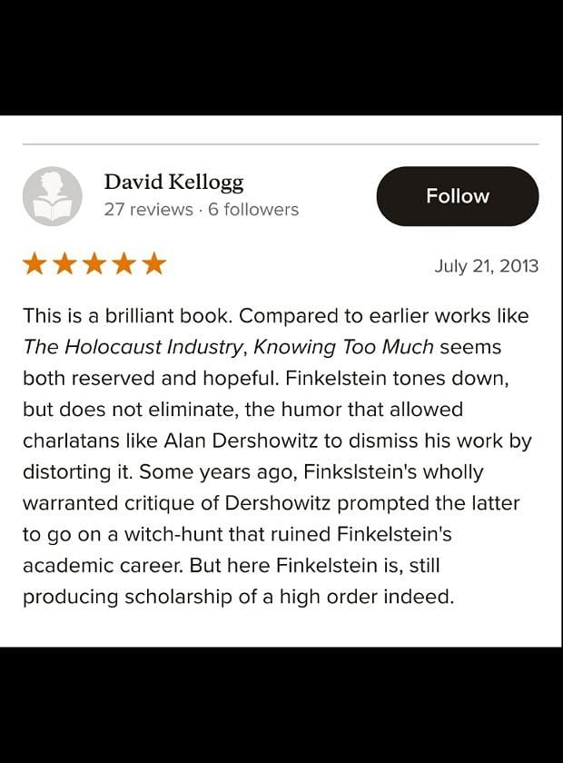 Onderzoeker, professor en Holocaust-overlever Norman Finkelstein onderzocht in 2012 al hoe een groot deel van de Joods-Amerikaanse gemeenschap afscheid aan het nemen is van het kolonistenproject. Hierbij kijkt hij ook naar media tactieken die het publieke debat beïnvloeden en/of saboteren. Bijvoorbeeld hoe het gebruik van “kennis” en informatie-overloads in politiek en media sociale en politieke macht beïnvloedt. Ook betwijfeld hij de waarde van vaak retorische, overvloedige en overbodige informatie ten koste van nauwkeurige analyse en morele helderheid. Iets wat wij ook veelvuldig in Nederlandse media en zelfs politiek voorbij gebeuren. 7 oktober is tenslotte niet in een vacuüm gebeurt maar probeer dat maar eens ter sprake te brengen..